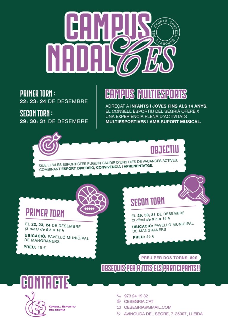 🎄 𝐂𝐀𝐌𝐏𝐔𝐒 𝐃𝐄 𝐍𝐀𝐃𝐀𝐋..Aquest Nadal arriba el primer Campus de Nadal del CES, al Pavelló…